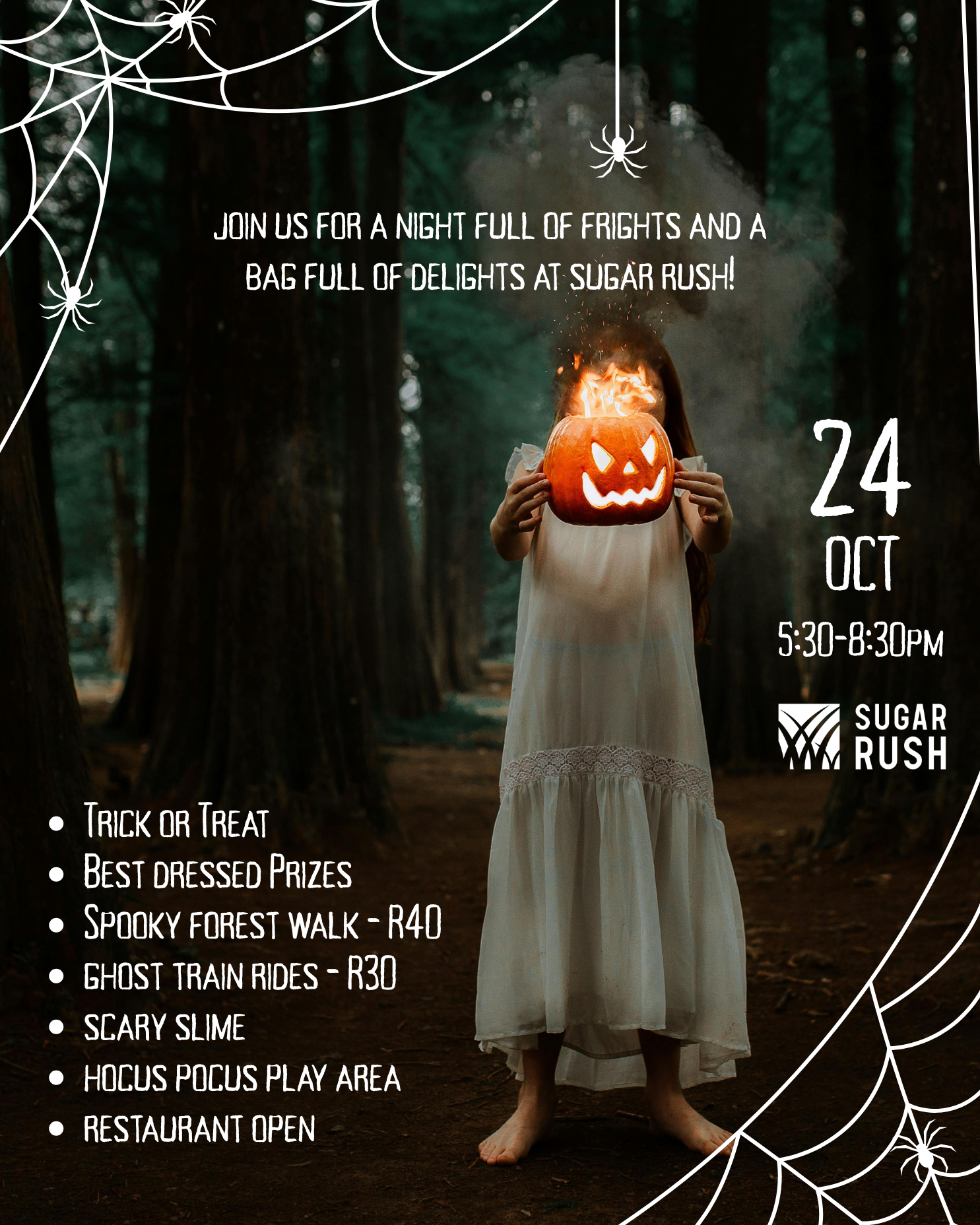 Sugar RushGet ready for a spooktacular Halloween at Sugar Rush Park! Join us for a fright-filled evening packed with fun for the whole family! 2km Spooky Walk @ Holla Trails - buy permits at the trail head Night Trails at Tree Trails (booking essential!) 071 0502396 Monster Slime Workshops with Unicorn Slime NasCarts open for some eerie racing [...]
